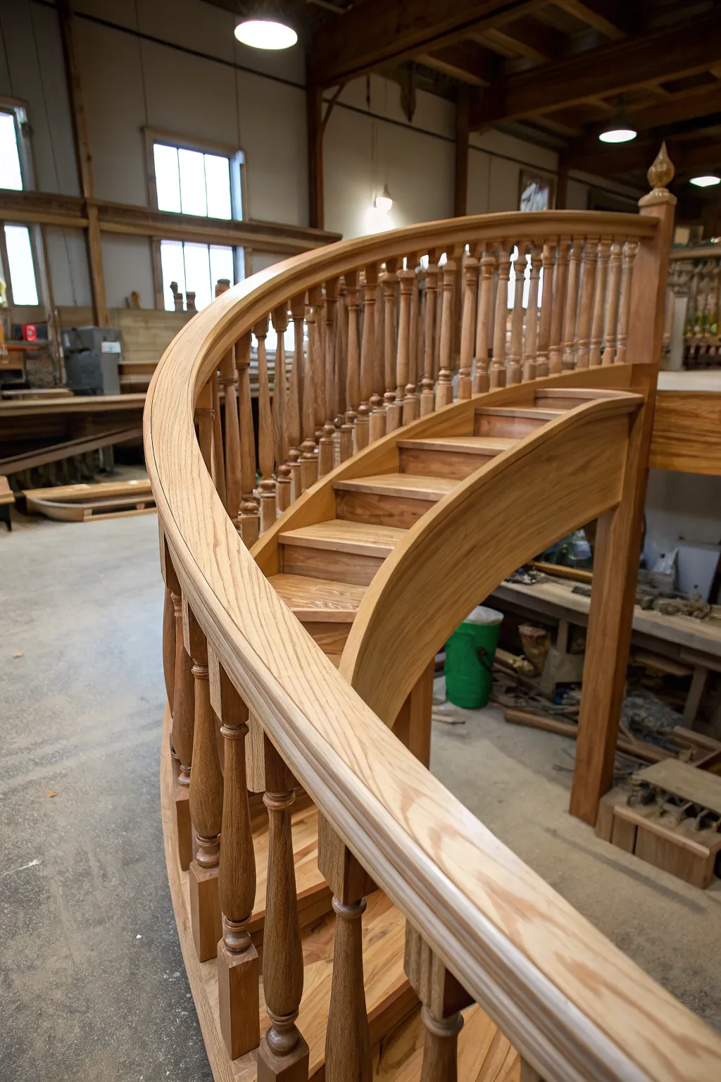 Craft a curved handrail using 2x4s for a touch of elegance and sophistication. I experimented with this design in my workshop, and the result was stunning.
