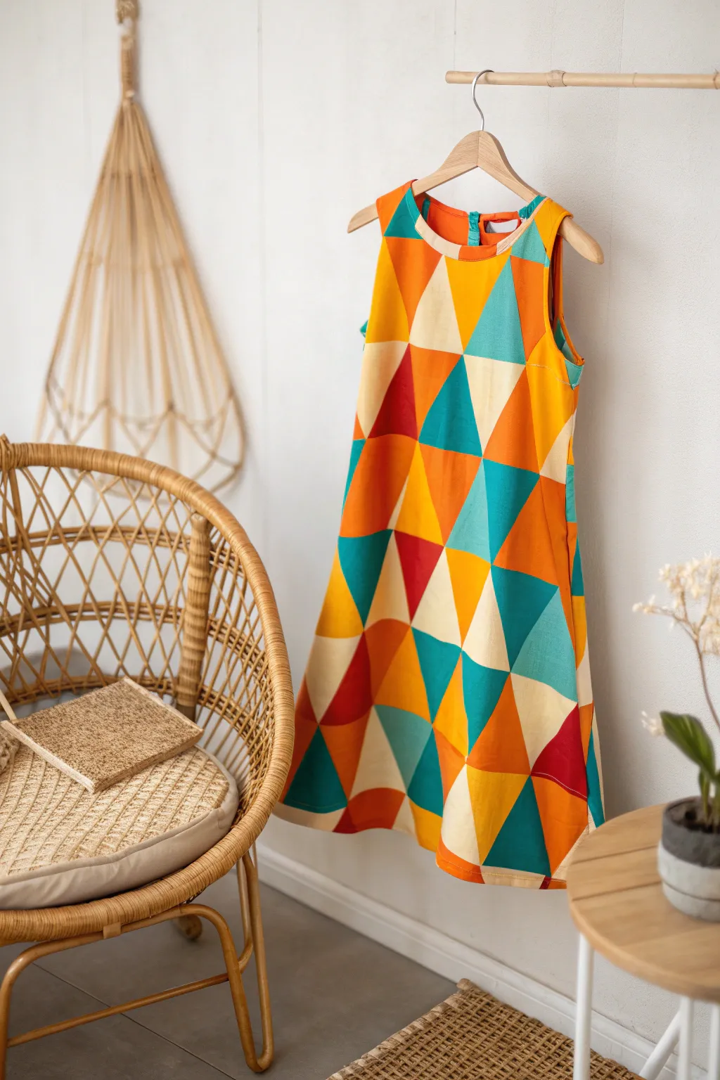 - Geometric Fabric by the Yard: Craft your mod mini dress with this vibrant geometric fabric, perfect for a 60s style statement.