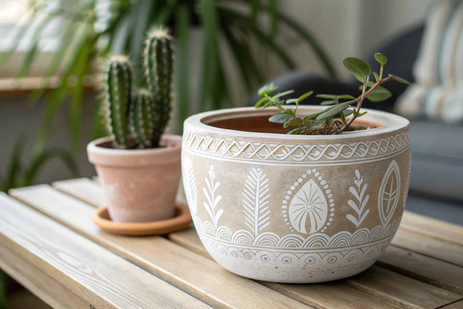 Achieve a faux ceramic finish by using glossy paints. This trick makes your pots look like they’ve just come out of a kiln, minus the hassle!