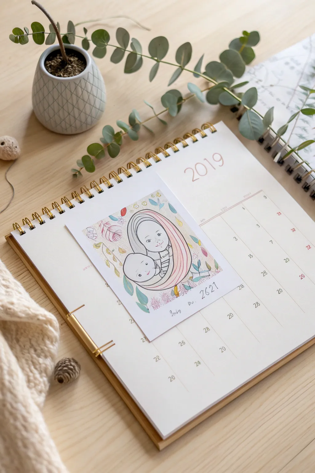 Include pieces of your baby’s early artwork as part of the calendar design. Those little scribbles and doodles hold so much charm and character.