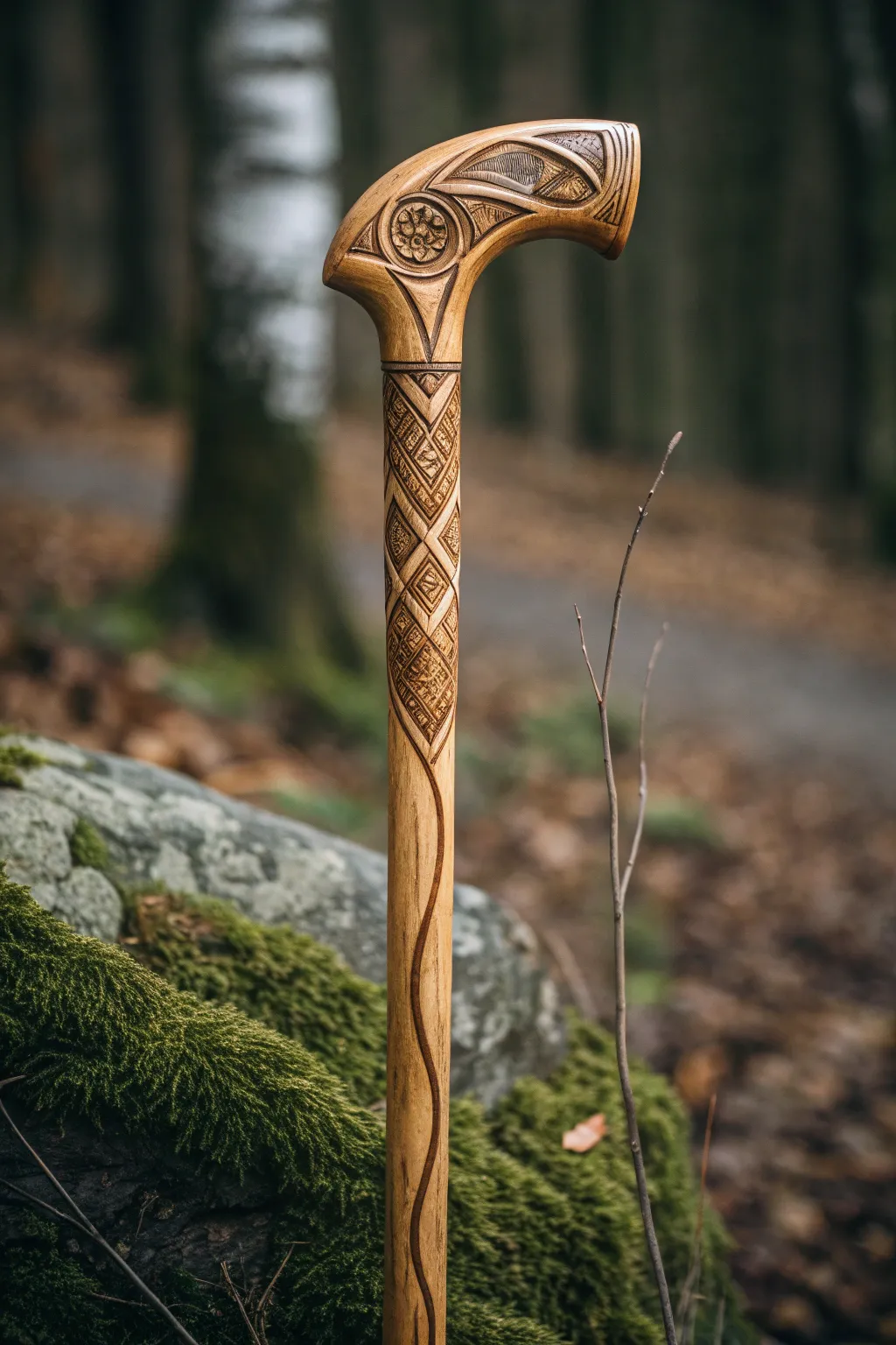 Sometimes less is more. Minimalist lines, carved with precision, can give your walking stick a sleek and sophisticated appearance that’s perfect for modern decor enthusiasts.