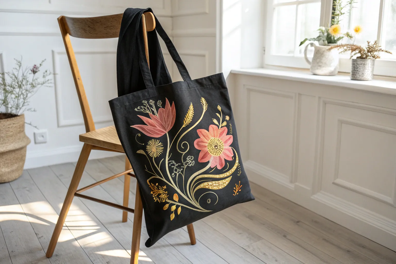 Transform your tote into a garden masterpiece with bold botanical artistry.