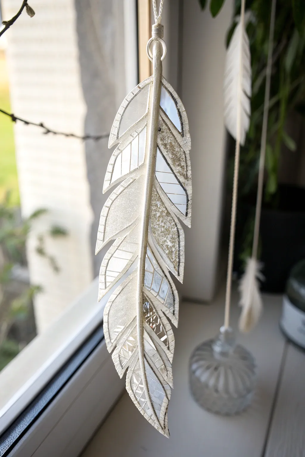 Craft delicate feathers using white and silver glass pieces. They add a whimsical feel to my entryway, welcoming guests with a light touch.