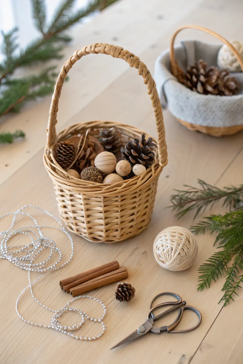 • Decorative Pine Cones: Enhance your basket with natural decorative pine cones for a rustic holiday feel.