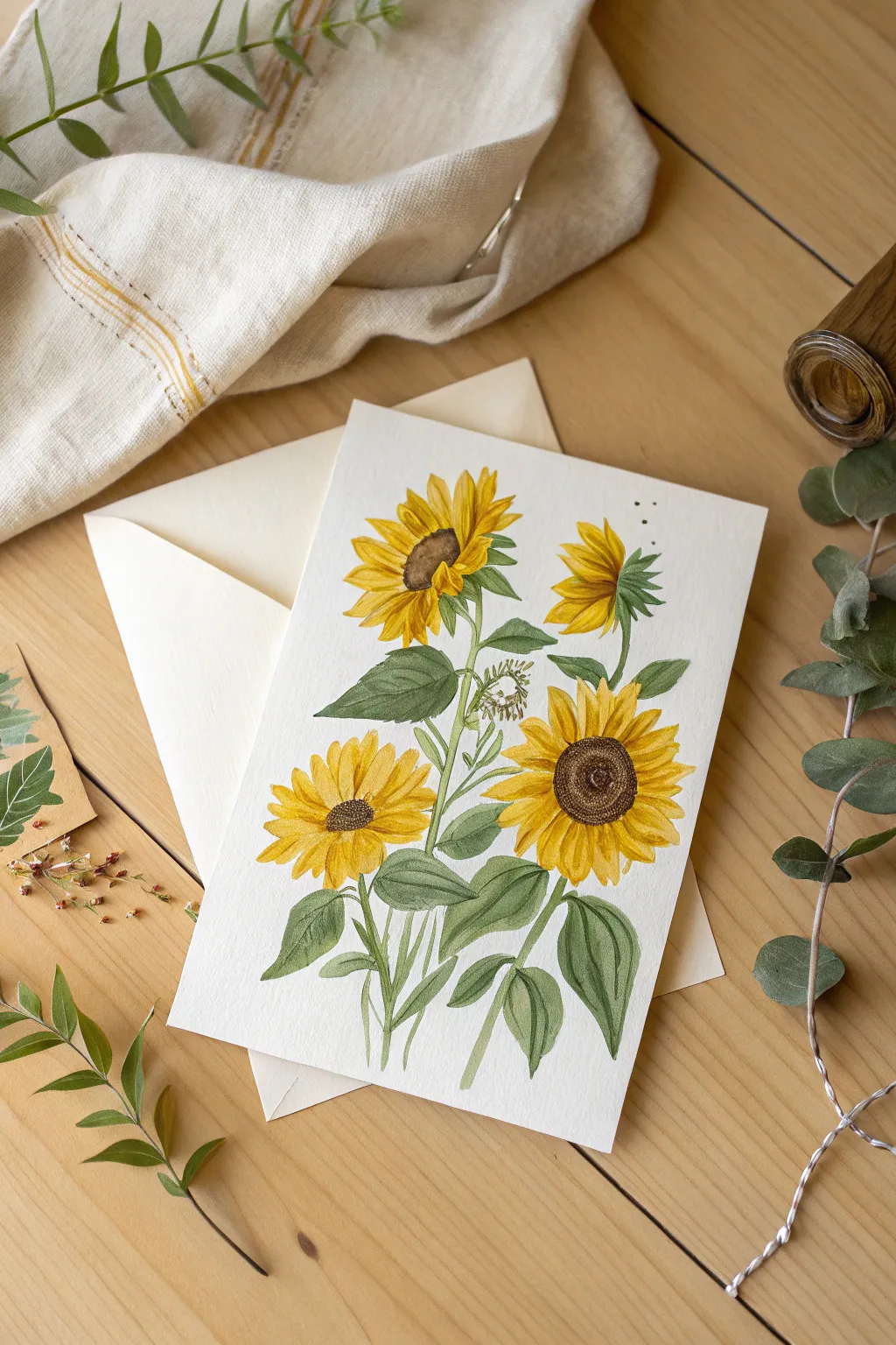 - Watercolor Sunflower Greeting Card Set: Brighten someone’s day with these vibrant sunflower cards, perfect for any occasion!