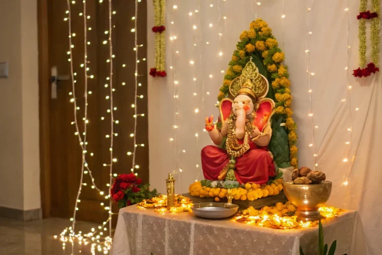 Celebrating Ganesh Puja is a wonderful way to bring warmth and festivity into your home. Whether you’re decorating for the first time or looking to refresh your style, here are some creative ideas to inspire your decor. Elegant Fabric Drapes Colorful fabric drapes add elegance and warmth. Drape colorful fabrics to add depth and richness to your pooja space. It’s an easy way to introduce texture and color, creating a warm, inviting atmosphere. Try these:…