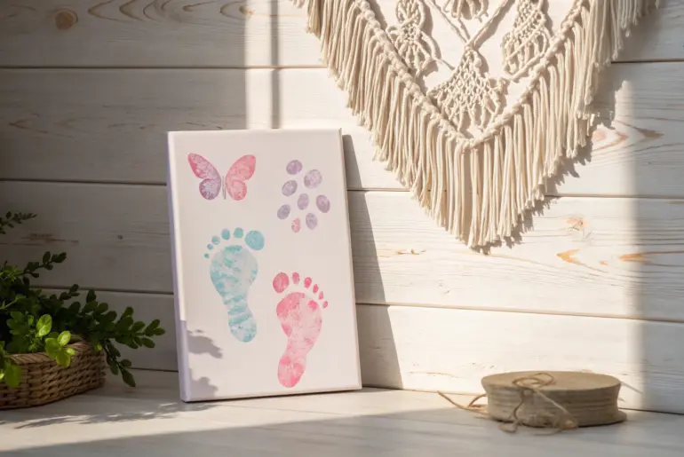 Creating footprint canvas art is a charming way to capture precious moments and add a personal touch to your decor. Let’s dive into some delightful ideas that transform simple footprints into treasured keepsakes. Animal Kingdom Create a whimsical zoo with every step: Transform tiny footprints into playful animals for a nursery delight. Transform those little footprints into a zoo of animals with a few painted details. I’ve turned my niece’s prints into elephants and giraffes…