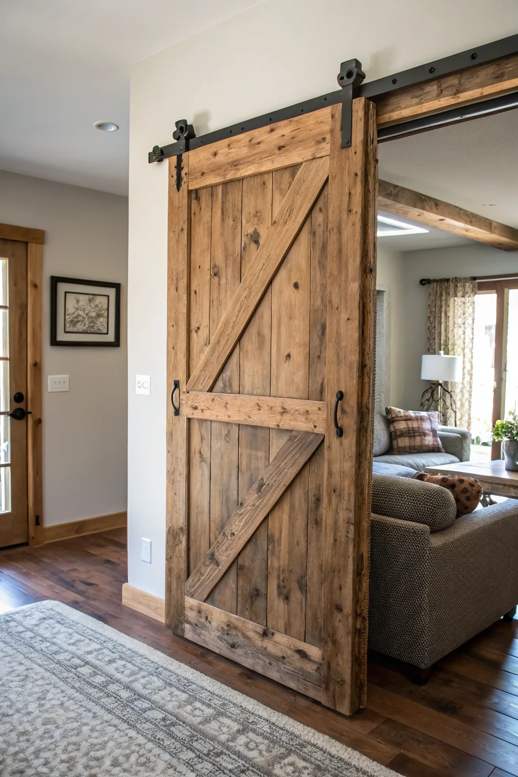 Infuse your space with rustic elegance — a barn door crafted from reclaimed wood.