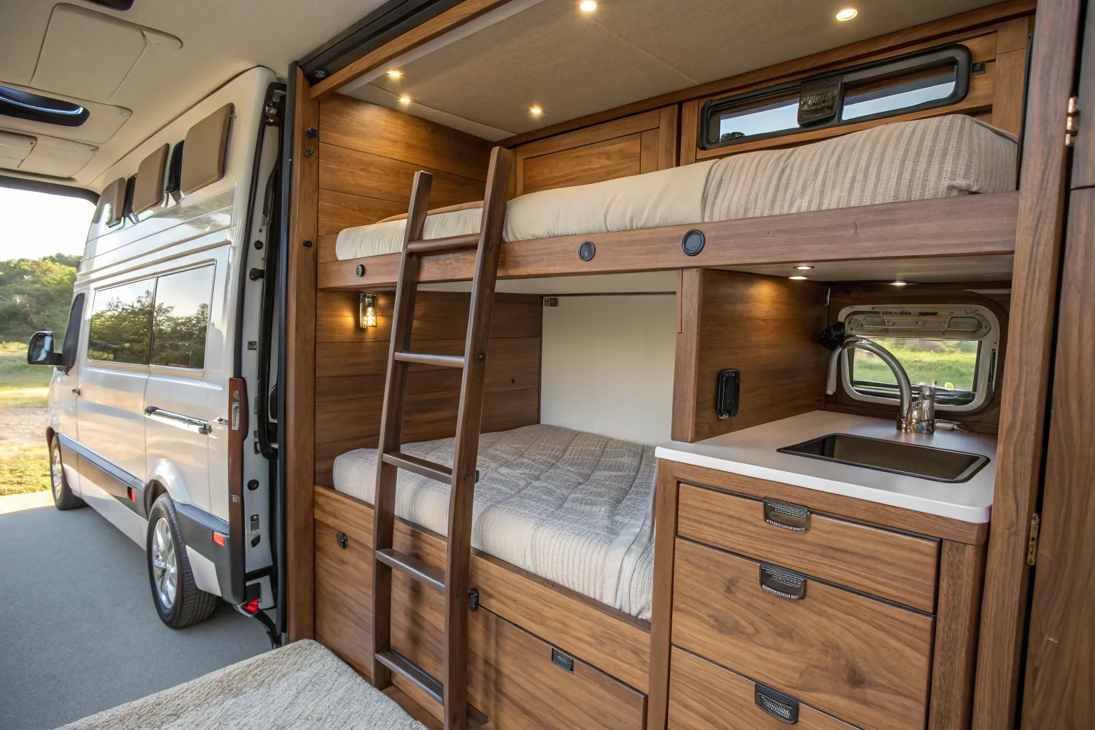 - Adjustable Wood Bunk Bed Ladder: Upgrade your van setup with a sturdy ladder, enhancing access to upper bunks easily.
