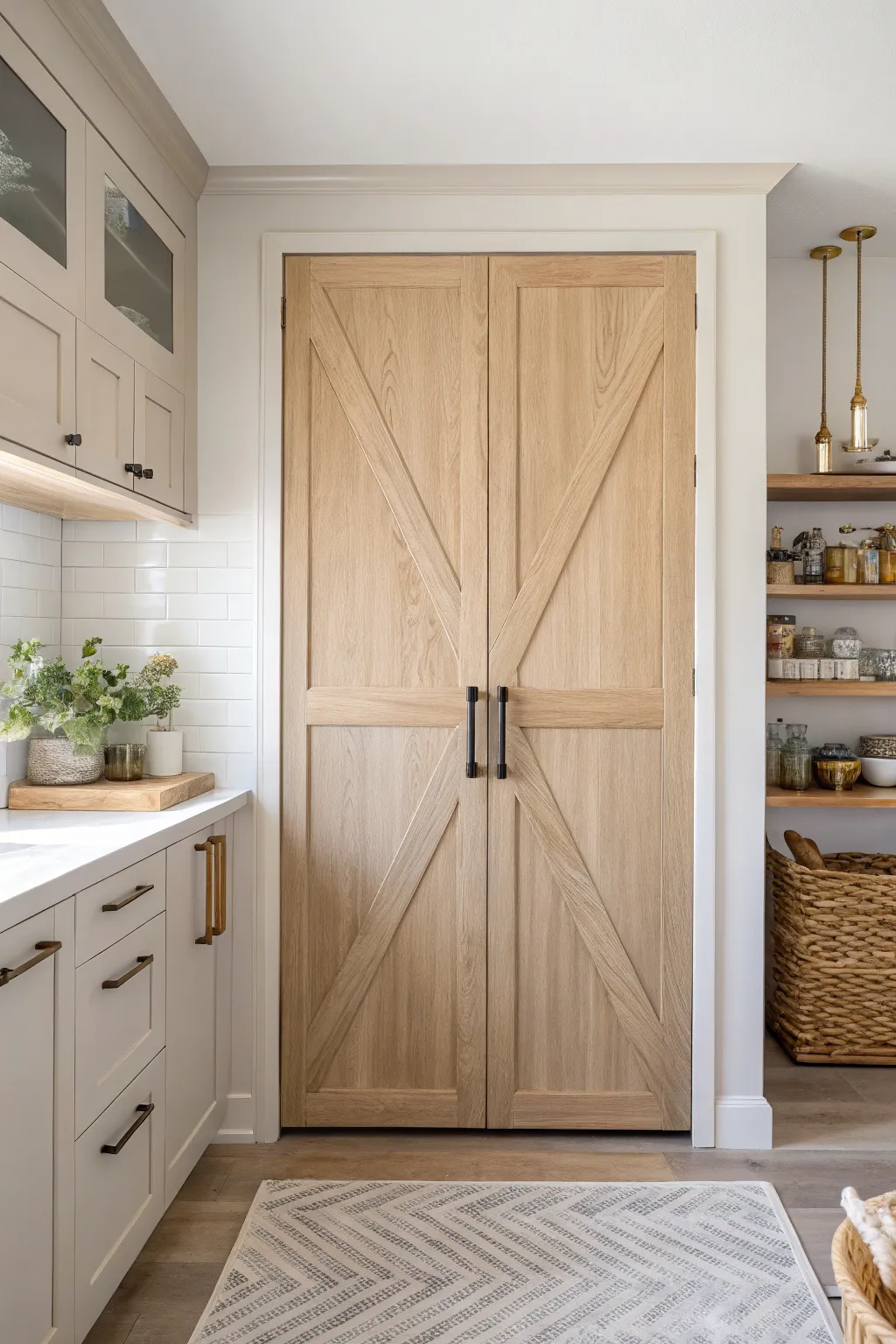 Consider French-style glass doors to add a modern touch while letting you peek at your pantry treasures. I love how they can be both sophisticated and functional, especially with frosted options for added privacy.