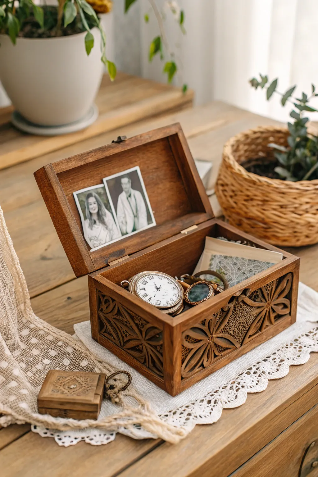 • Decorative Wooden Keepsake Box: Store precious memories with this beautifully crafted keepsake box, perfect for time capsules.