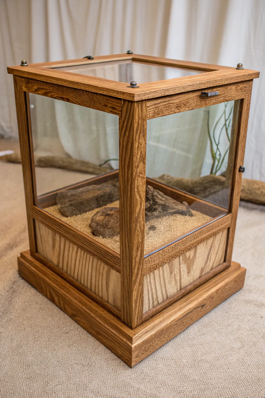 Build a classic yet elegant wood and glass terrarium using plywood and plexiglass. I love how this design showcases your dragon while keeping a natural look.