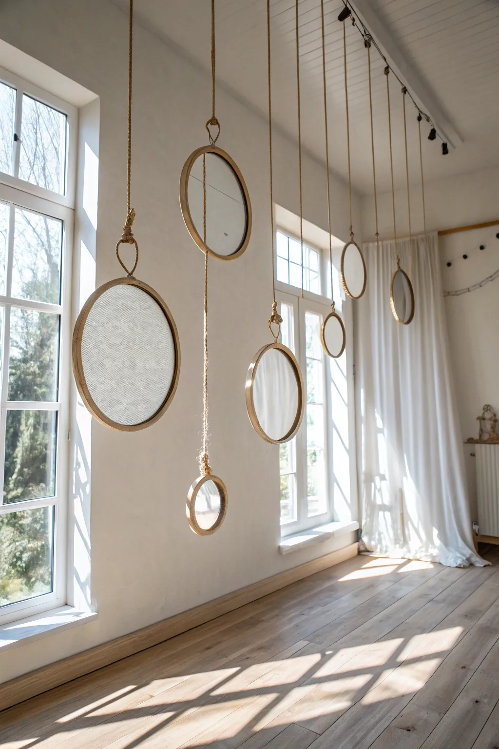 Transform your space with mystical suspended mirrors, adding light and elegance to any room.