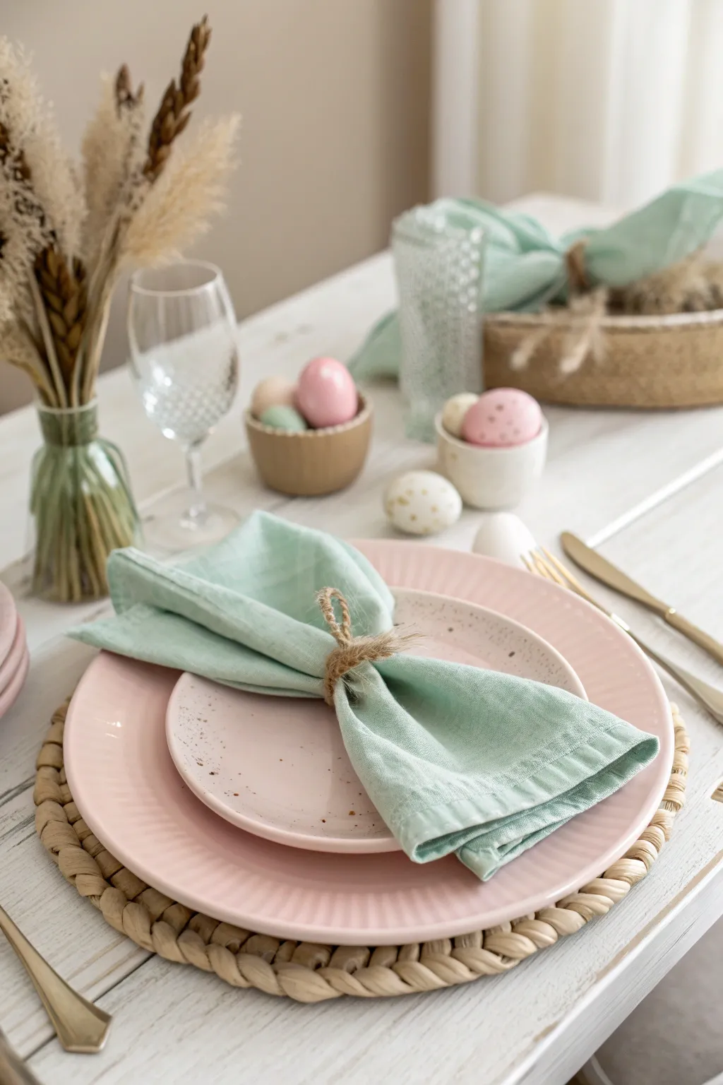 Coordinate your tableware with your centerpiece by using pastel-hued plates and napkins. It’s an easy way to pull the whole look together, and trust me, it makes a big difference!