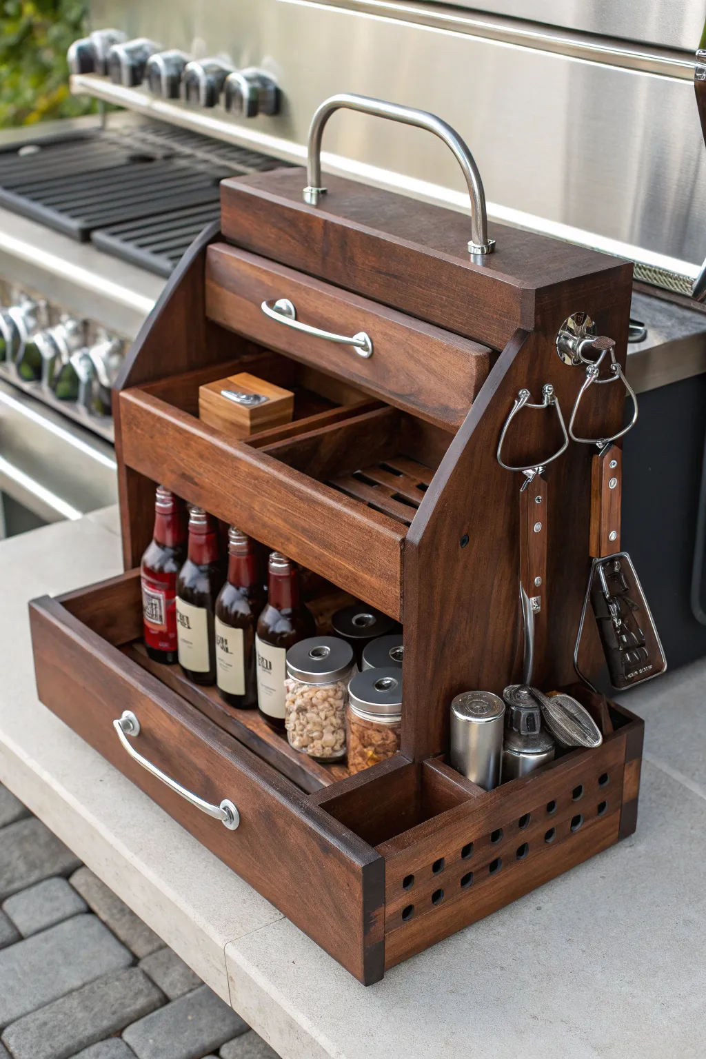 Elevate your grilling game with a handcrafted dual-level caddy—where form meets function in perfect harmony.