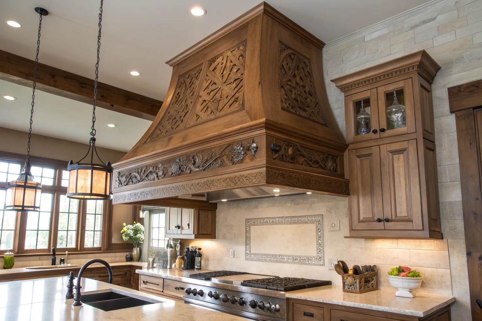 - Antique Bronze Pendant Lights: Choose antique bronze pendant lights for a warm, vintage touch above your range hood.