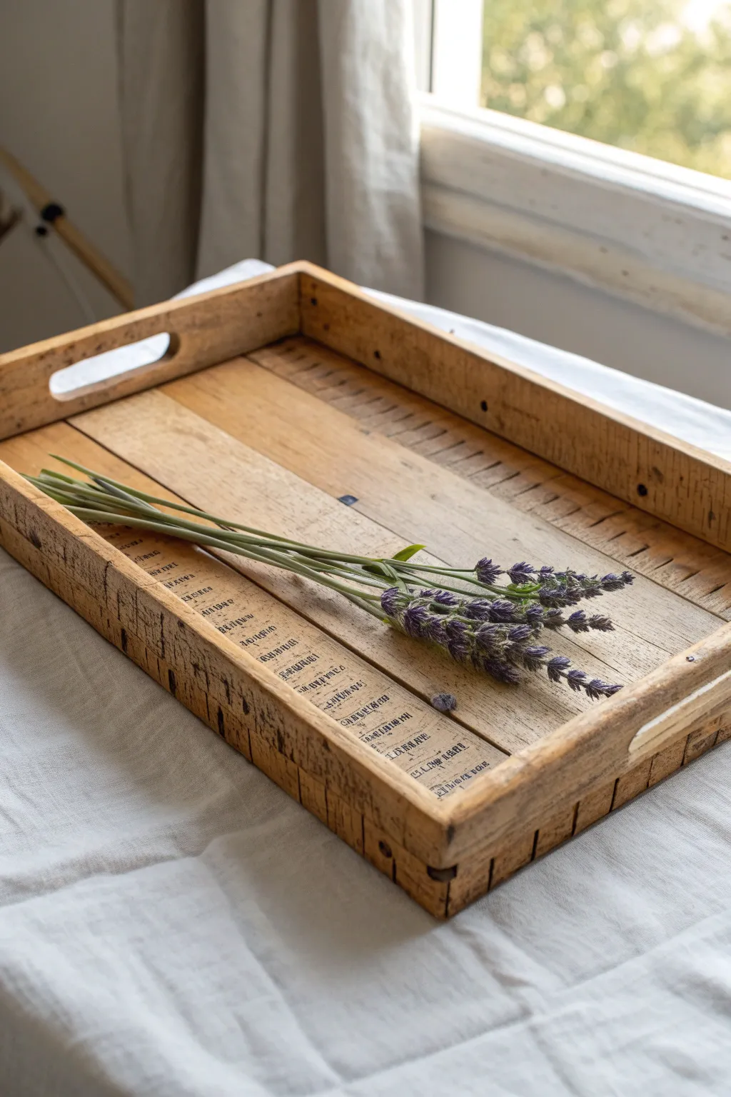 Achieve a farmhouse look with a bit of chalk paint and some distressing techniques. I love how a simple sanding block can transform a plain tray into a rustic masterpiece.