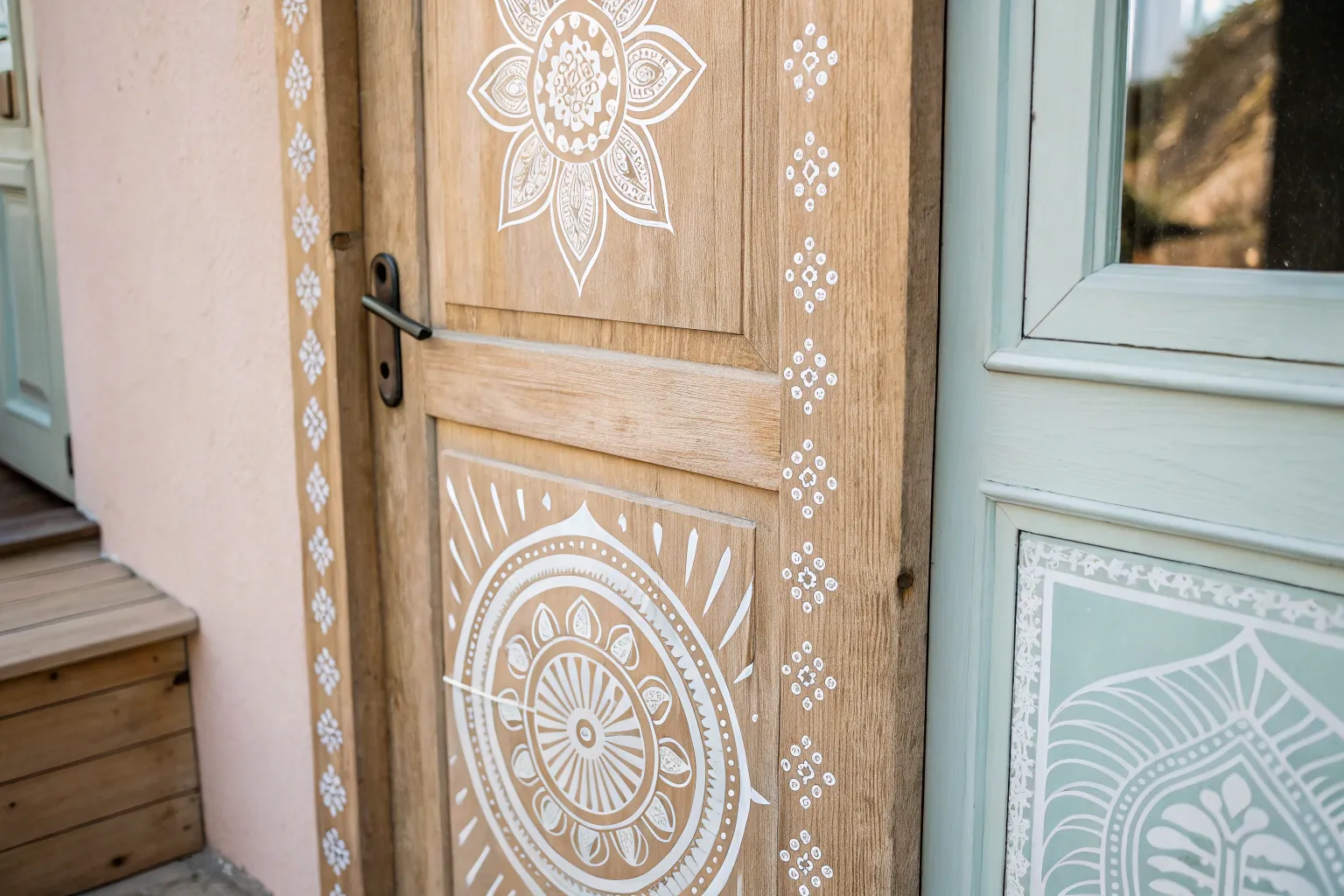 Add a global touch with tribal patterns. I recently experimented with this on a hallway door, and it adds an exciting cultural flair to my home.