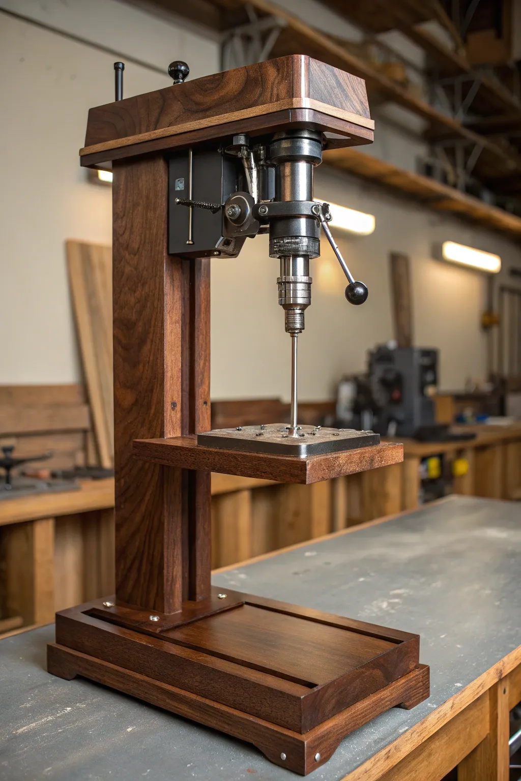 • Metal and Wood Drill Press Stand: Transform your workspace with a sturdy drill press stand, combining metal strength and wood charm.