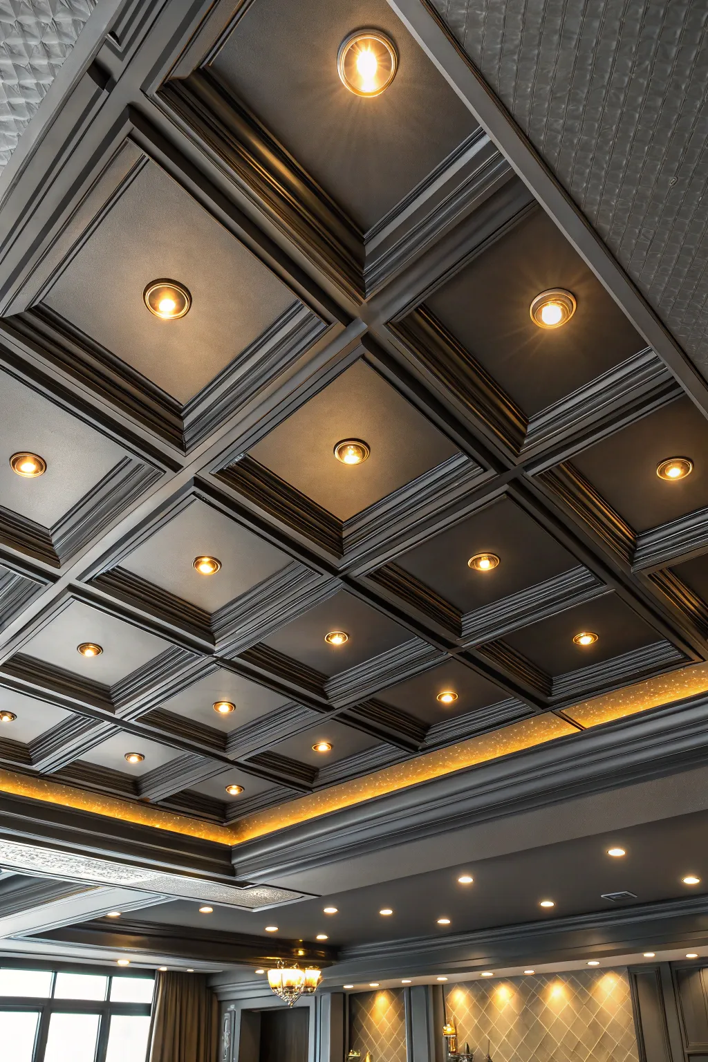 - Coffered Ceiling Molding: Install molding to accentuate your ceiling’s beauty and amplify a luxurious coffered effect.