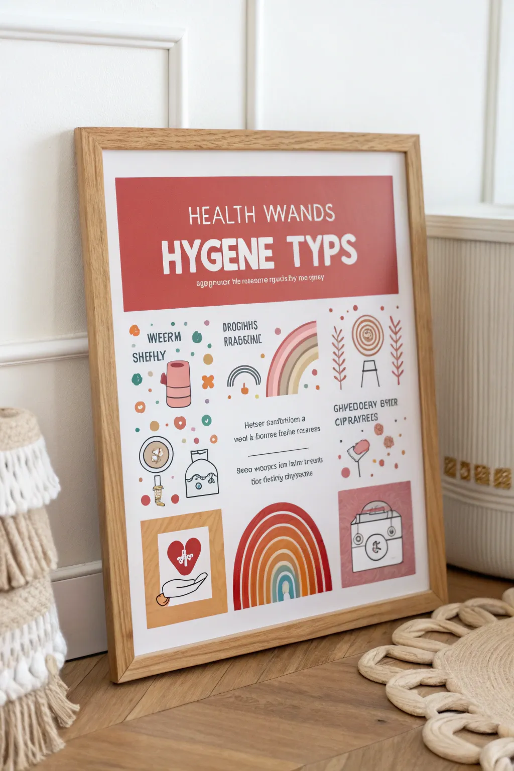 A poster on health and hygiene is essential, especially in shared spaces. I once created a playful hygiene guide for kids that was both educational and fun!
