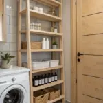 Consider building a bench with integrated coat hooks above it for a multifunctional piece. It’s perfect for putting on shoes while keeping coats and bags neatly organized.