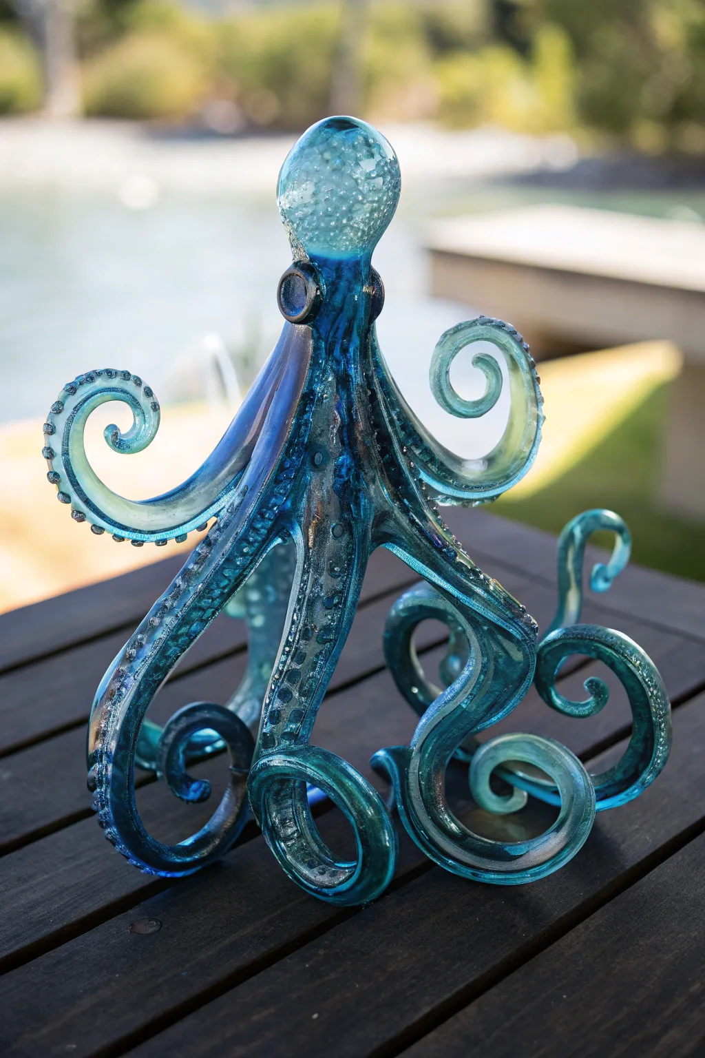 Add a touch of the ocean to your home with glass octopus sculptures. Their tentacles provide a fun challenge and make for an eye-catching display.