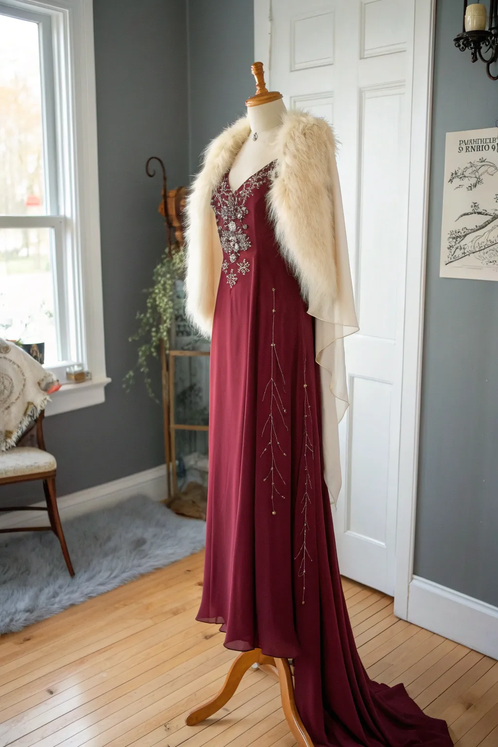 Emulate a movie star from a classic film with elegant yet warm attire. I opted for a long evening gown and faux fur stole, feeling like I stepped straight out of Hollywood.