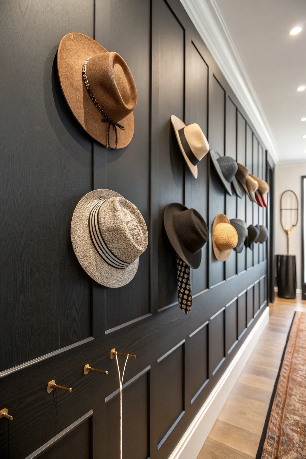Attach magnetic strips to your wall for a floating hat illusion. It’s a fun, modern twist that’s sure to impress your guests and keep your hats handy.