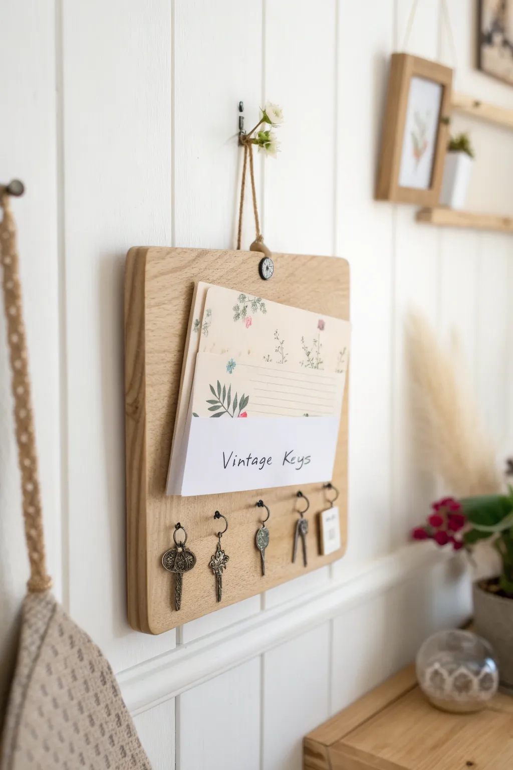 Incorporate keys into a personalized memo board for a stylish organization solution. It’s a creative way to keep track of important notes in my kitchen.