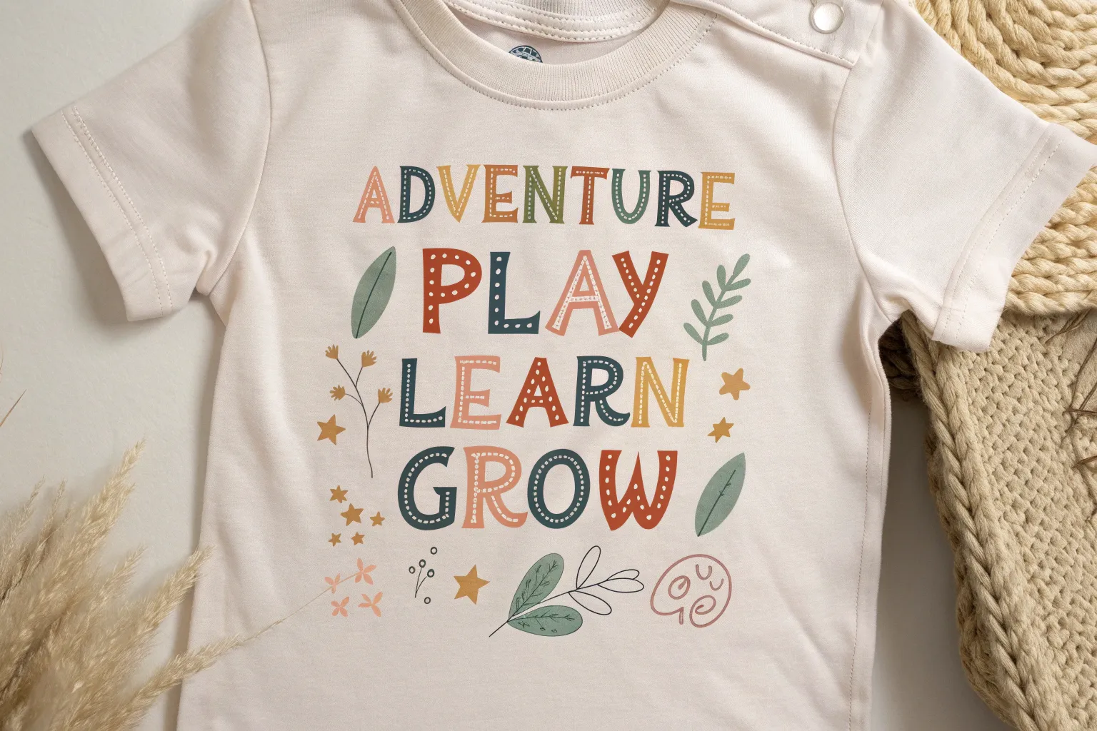 Incorporate words like ‘Learn‘ and ‘Grow‘ to create an educational vibe. I designed a shirt for my cousin with these words, and she wears it with pride to preschool.