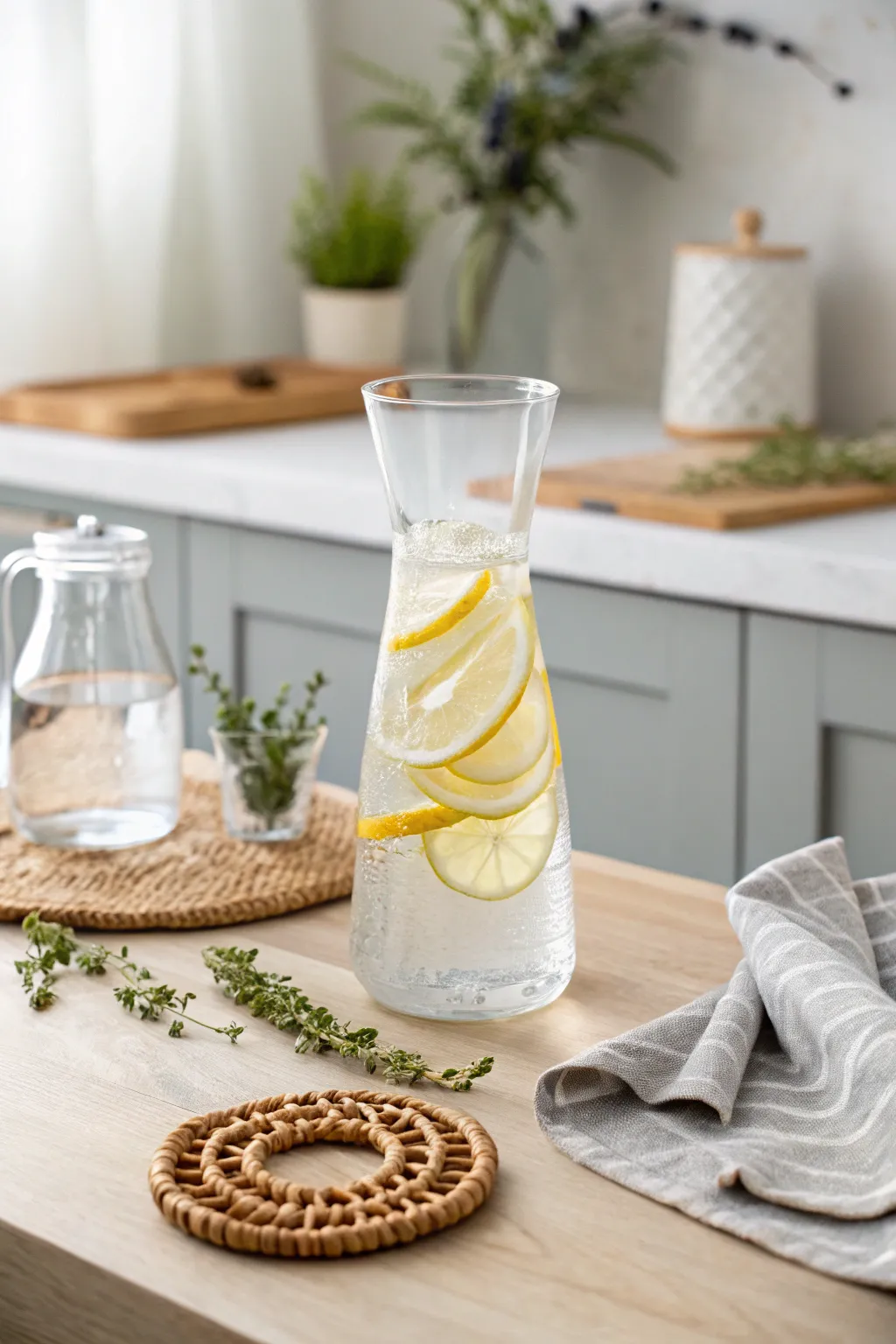 • Glass Water Pitcher with Lid: Elevate your water with a chic glass pitcher, perfect for showcasing refreshing lemon twists.