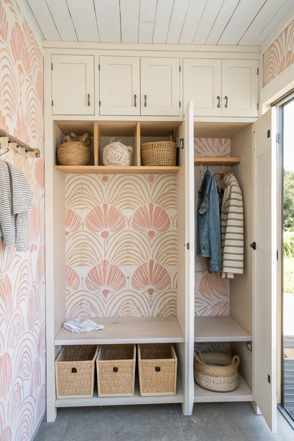 Line your locker with decorative wallpaper to give it a stylish vibe. I chose a bold pattern and it brightens my day every time I open the door.