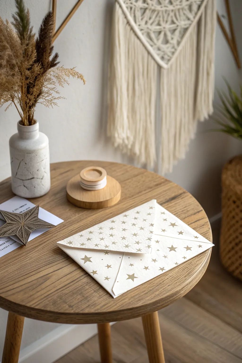 Use stencils to add clean, repeating patterns. Once, I used a star stencil to create a cosmic theme, and it instantly gave my mail a dreamy vibe.