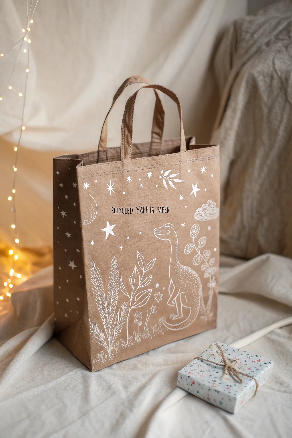Use seasonal wrapping paper—like leaves for fall or snowflakes for winter—to make your bag theme-appropriate. I always have some on hand for last-minute gifts.