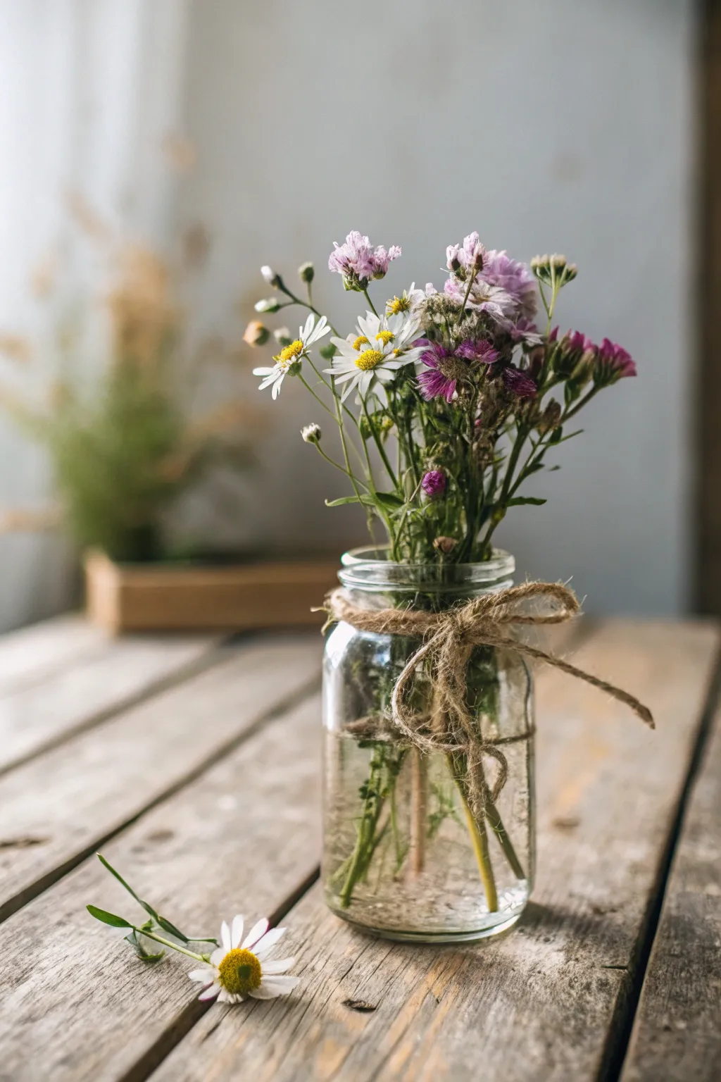 Use vintage mason jars to hold wildflowers for a rustic touch. Their timeless appeal adds character to any room.