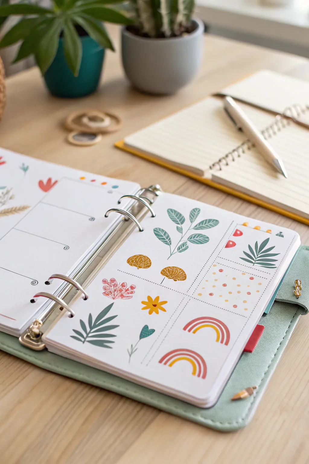 Experiment with creative layouts for a personalized touch. It keeps your binder fresh and inviting, like a little art project.