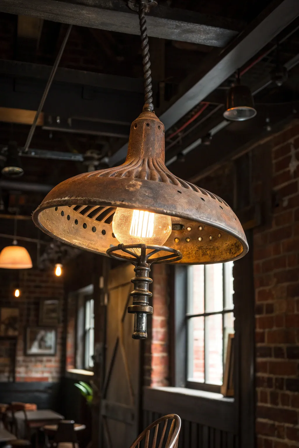 - Industrial Pendant Light Fixtures: Install a rustic industrial pendant light fixture to complement your unique tractor seat lampshade.