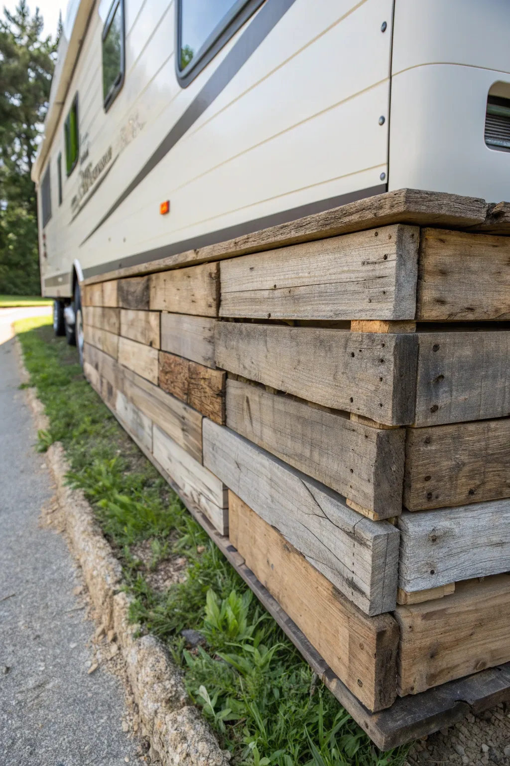 Start with the basics: disassemble a few pallets and use the slats to create a straightforward skirting. It’s sturdy and gives your RV a rustic, cozy look.