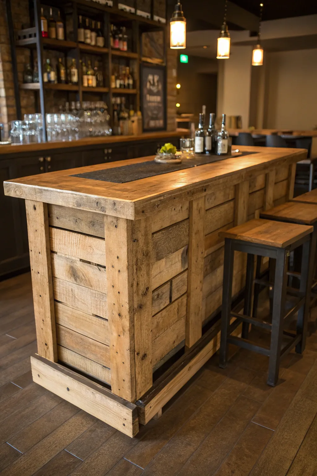 Host happy hours in style with a pallet bar table. It’s a great addition to any mancave or backyard setup, offering a casual spot to mix drinks and socialize.