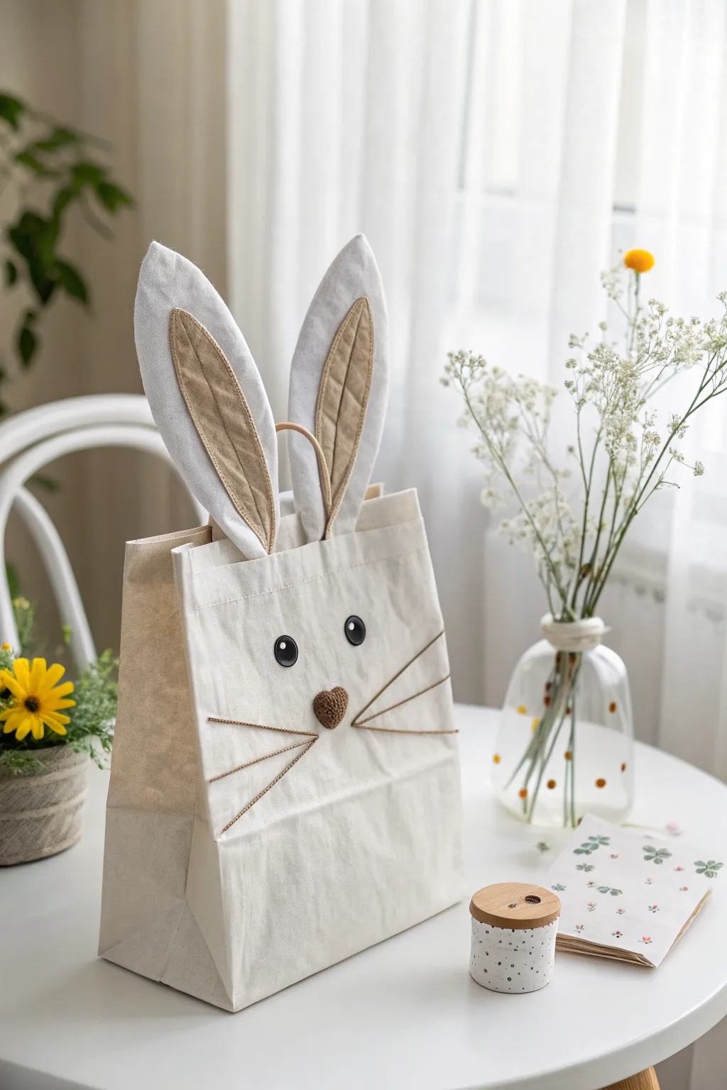 Transform your bags into adorable creatures by adding ears, googly eyes, and a button nose. My niece adores the bunny bags I made for her birthday party!