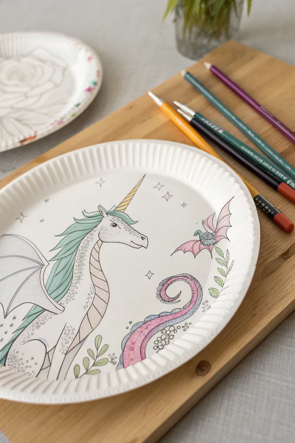• Drawing Paper Plates: Boost fun with sturdy paper plates designed for sketching and drawing fantasy creatures.