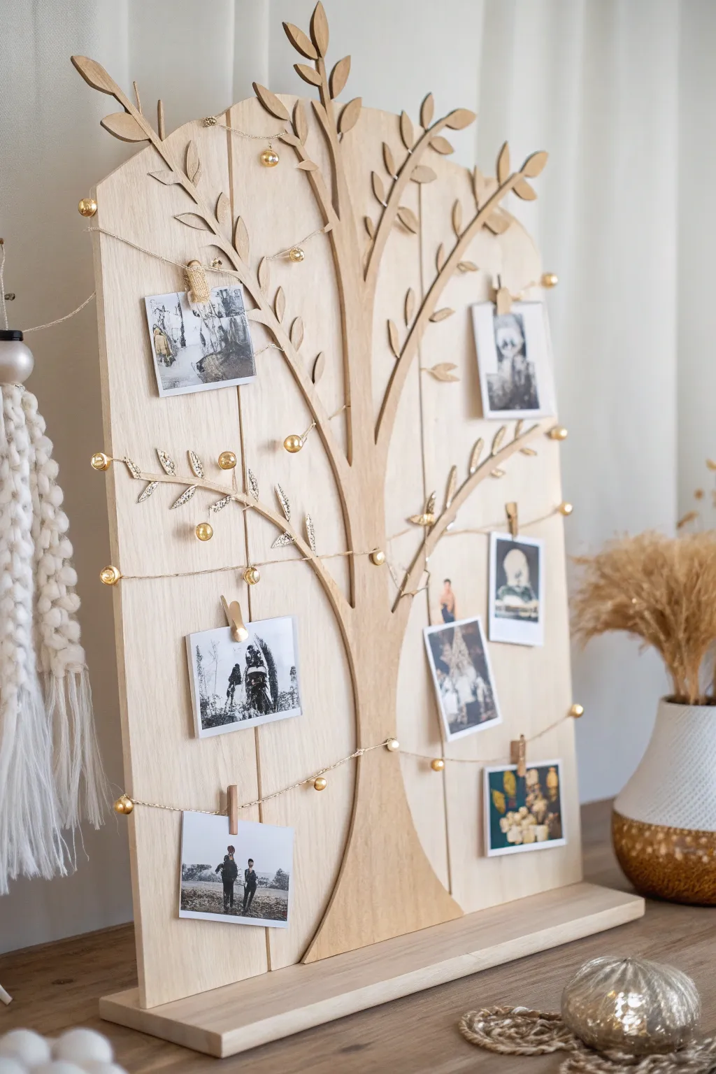 • Wooden Family Tree Photo Display Stand: Showcase family photos beautifully on this elegant wooden photo display stand for lasting memories.