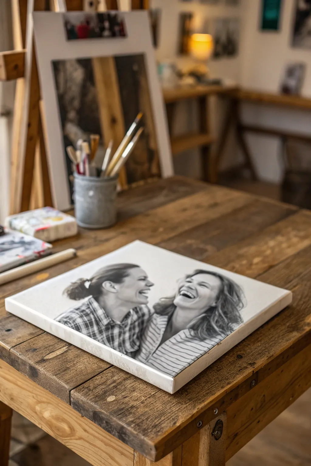 Turn a favorite photo into canvas art that he can proudly display. I have one in my studio that captures a candid moment of laughter between us, and it never fails to brighten my day.