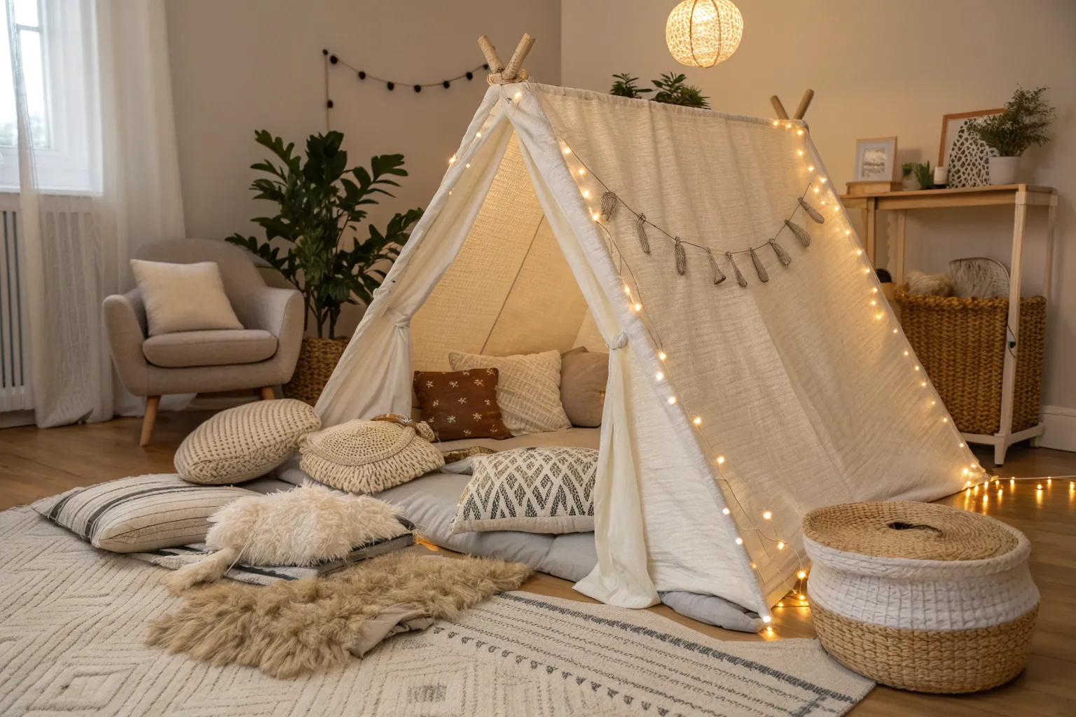 Embrace cozy nights with the perfect pillow fort setup—where Scandinavian simplicity meets boho charm!
