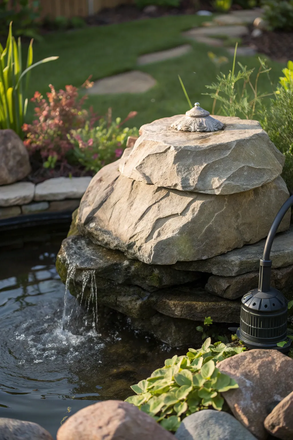 • Stone Cover Garden Light: Illuminate your pond while cleverly hiding the pump with a decorative stone cover garden light.