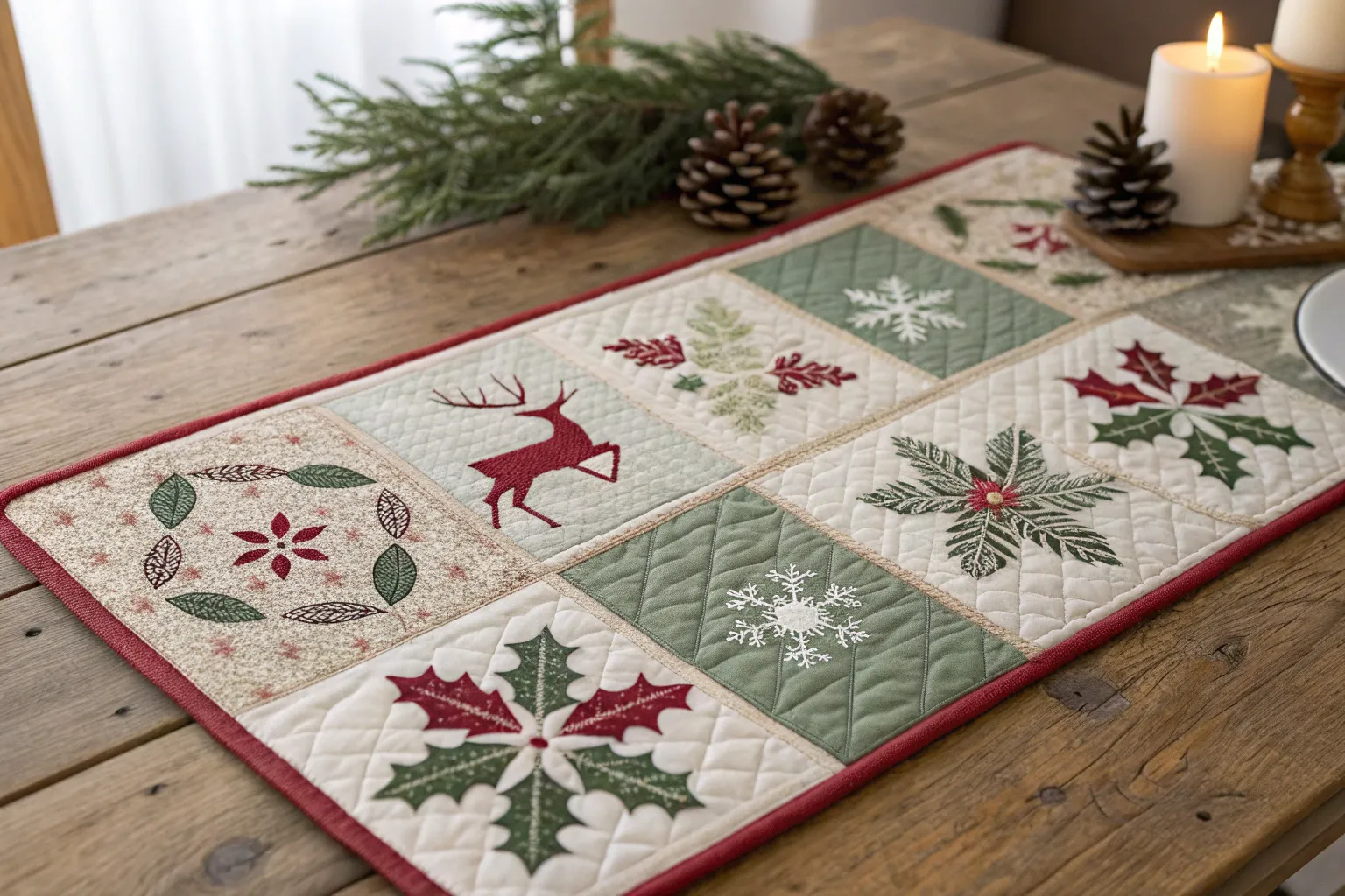 Embrace the rustic charm with quilted Christmas tree designs. Use earthy tones and natural fabrics for a cozy, woodland feel. It’s like bringing a bit of the forest to your table!