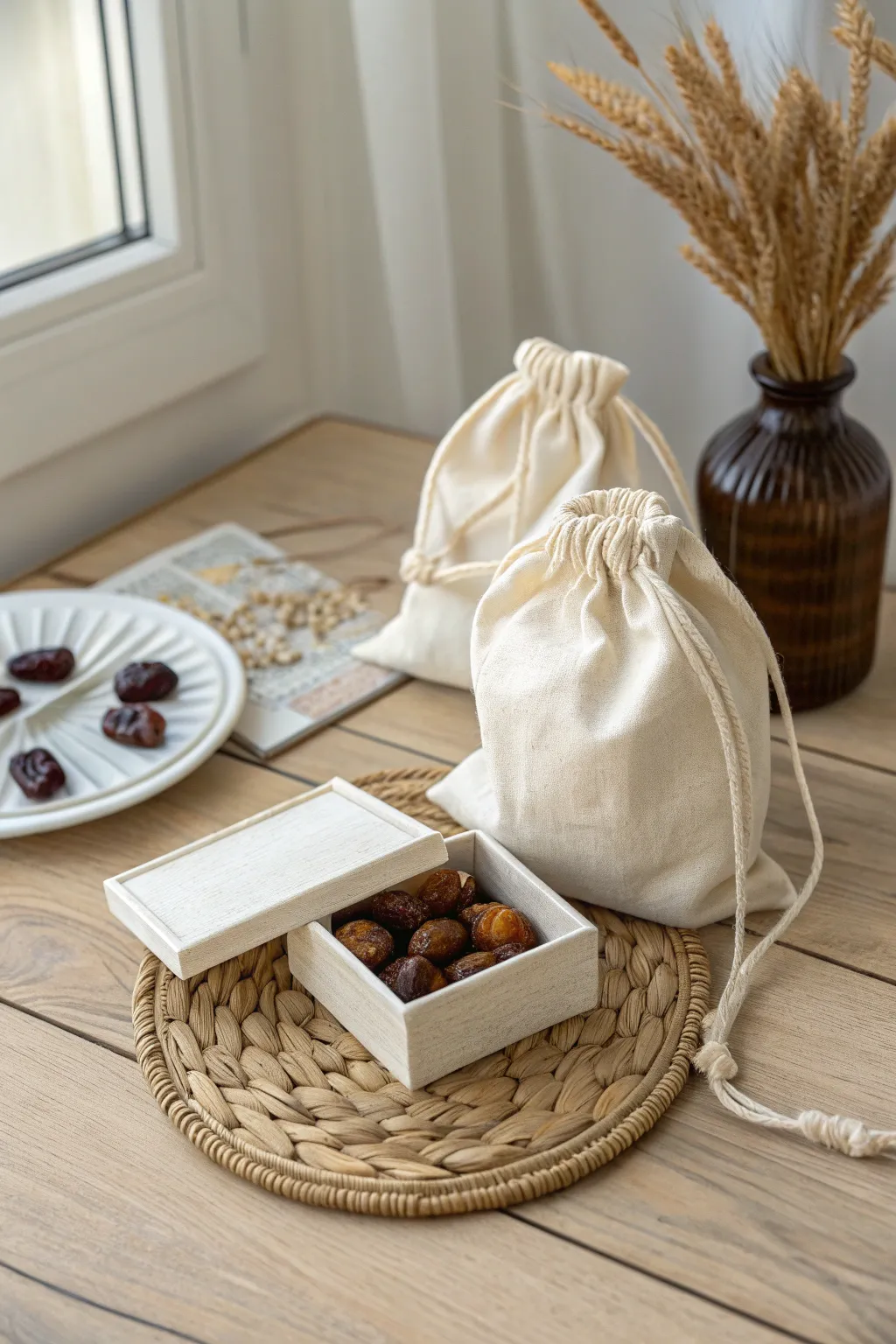 - Eco-Friendly Gift Bags with Crescent Moon Designs: Choose eco-friendly gift bags featuring crescent motifs. An elegant touch for your Ramadan gifts!