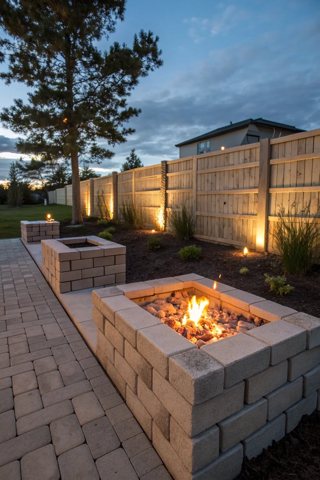 Elevate your fire pit experience with expertly crafted cinder blocks and lush planters.