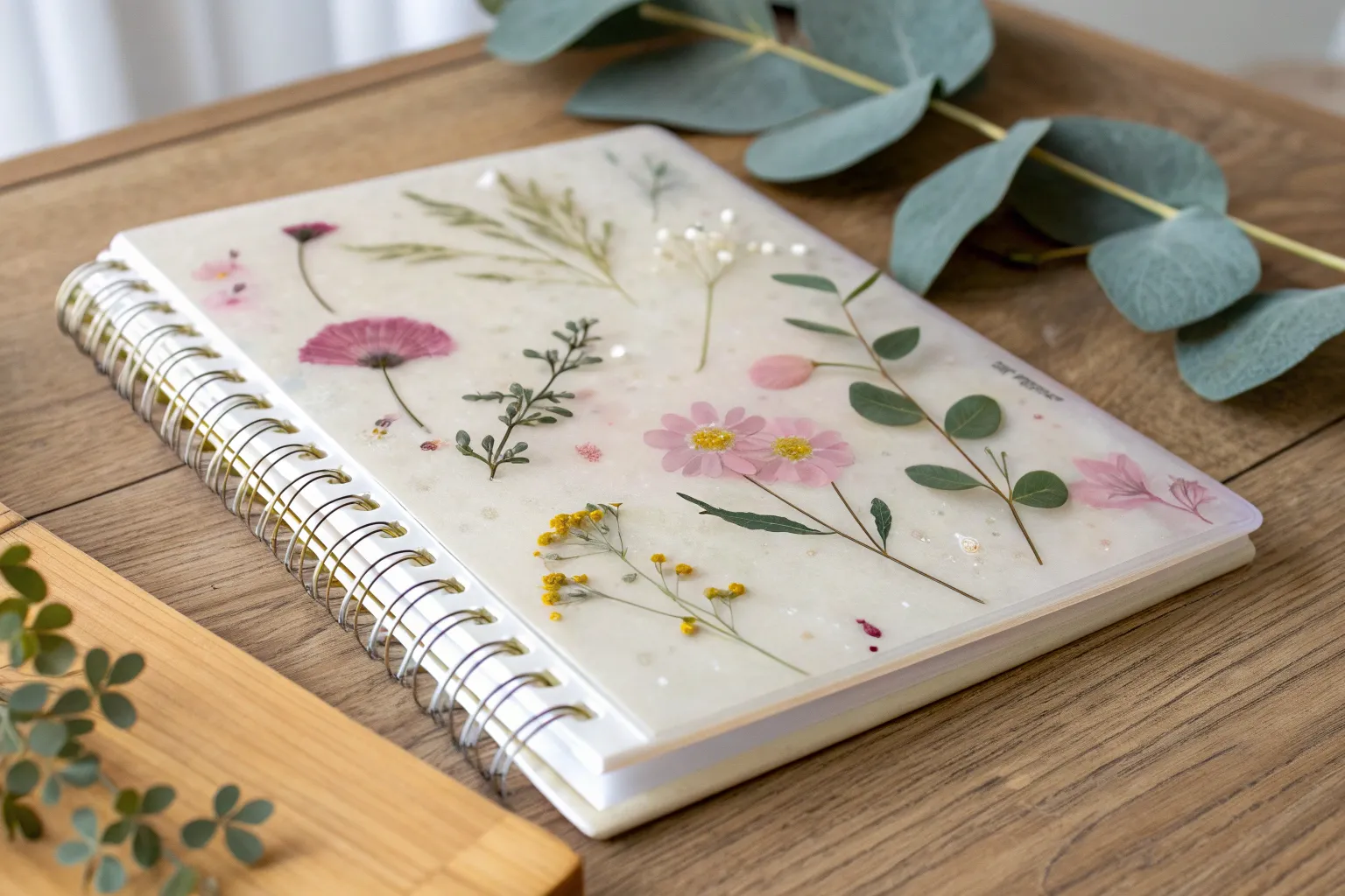 Capture the essence of spring with a floral resin notebook cover that combines nature’s beauty with minimalist design.